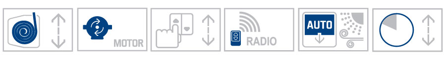 OVLÁDÁNÍ – samonavíječ (bílá, hnědá), velký samonavíječ (bílá, hnědá), motor v kombinaci s vypínačem nebo dálkovým ovládáním, převodovka s klikou (bílá, elox), pružinová protiváha (madlo – bílá, hnědá)